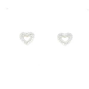 Beautiful sterling silver heart shaped earrings. A heart cut out in the centre surrounded by a stone set border. Suitable for young and old.